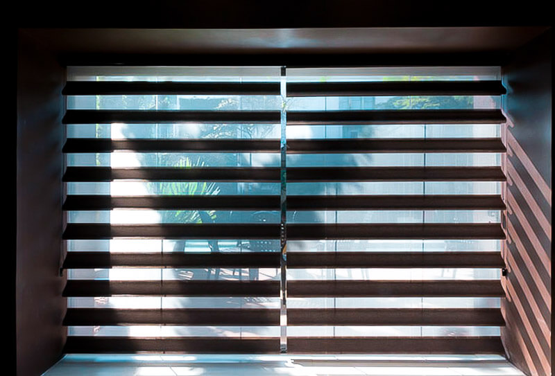 Estando aberta ou fechada você não vai acreditar no efeito da Cortina Illuminê. O motivo é simples: o modo como ela é fabricada. Um painel de tela extrafina e contínua sustenta faixas de tecido mais encorpado, criando linhas horizontais na cortina.